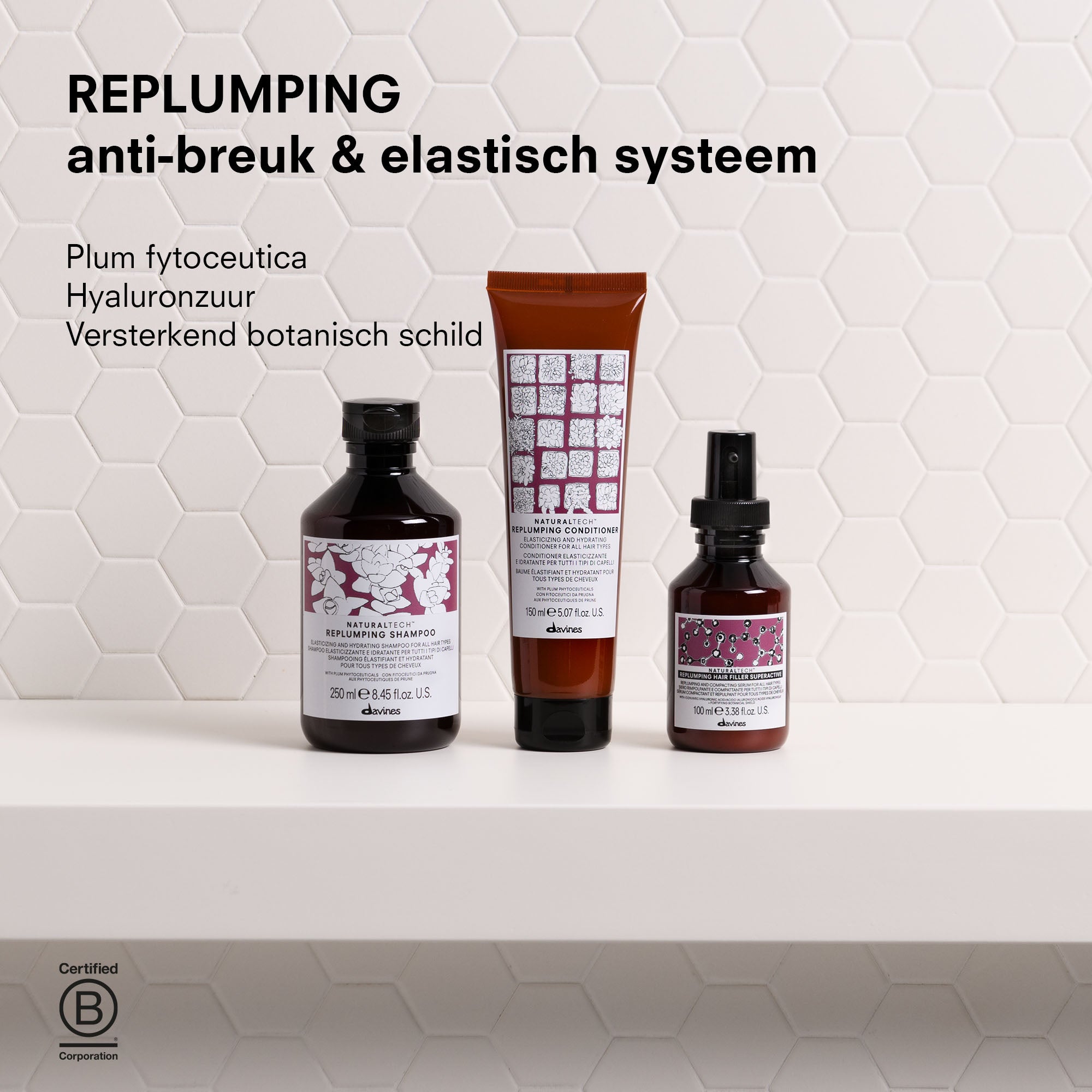 REPLUMPING Shampoo: Hydrateert het haar en geeft elasticiteit. Beschermt de haarstructuur tijdens de reiniging. Antioxidantrijke werking. Natuurlijke actieve ingrediënten.