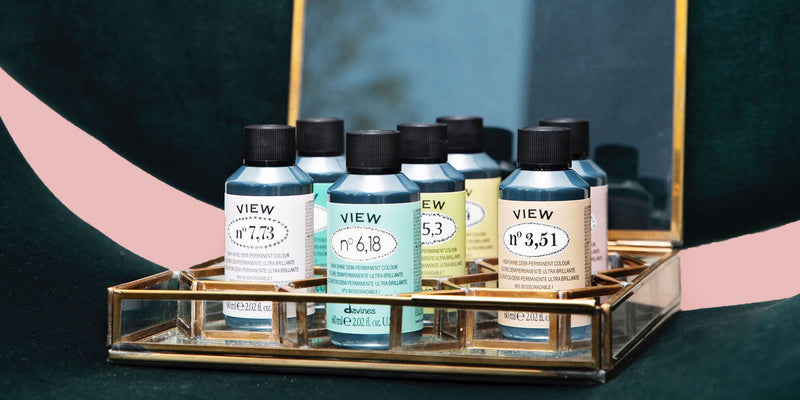 Davines' Onderzoeks- en Ontwikkelingslaboratorium ontwikkelde View, een delicate niet-bindende demi-permanente kleur, die het risico op haarbreuk vermindert, de haarstructuur beschermt en een extreme glans garandeert.